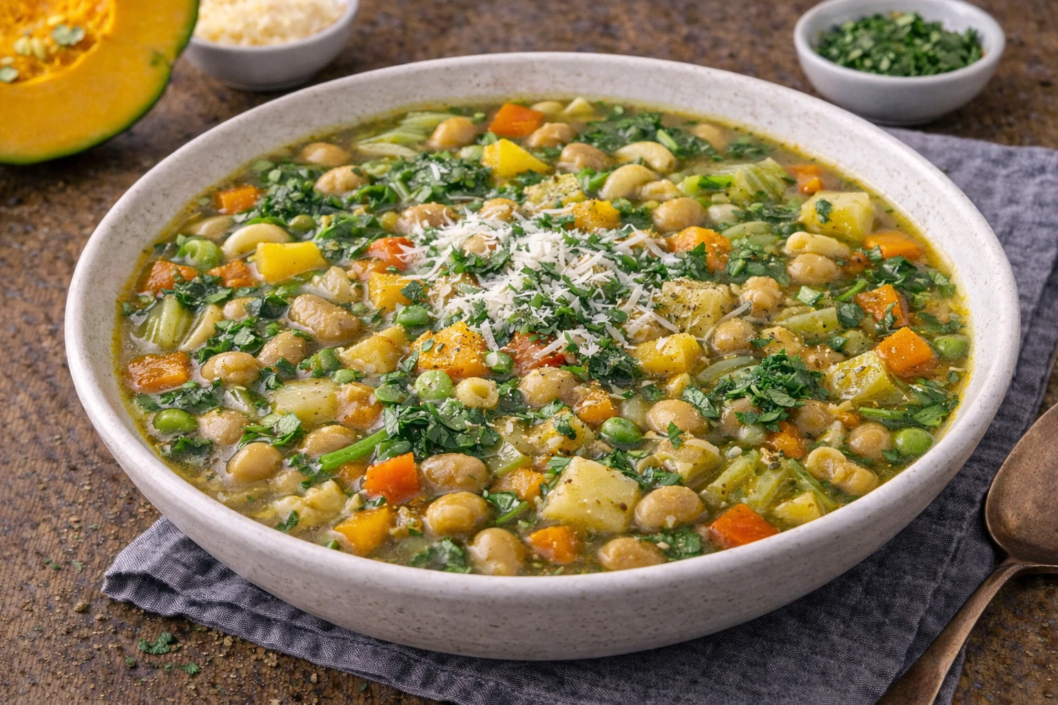 Menestrón peruano económico con menestras y verduras