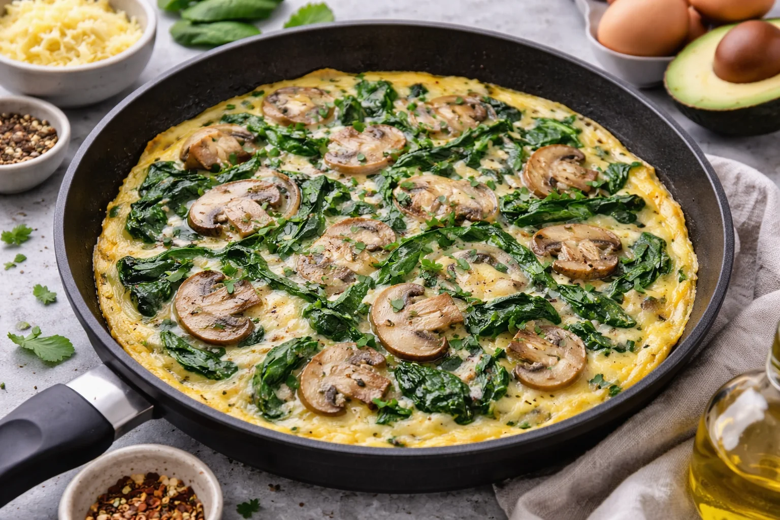 Tortilla de Espinaca y Champiñones: Desayuno saludable para empezar bien