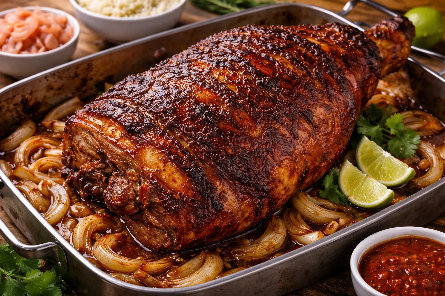 Variantes de pierna de cerdo al horno con adobo criollo (opcional)