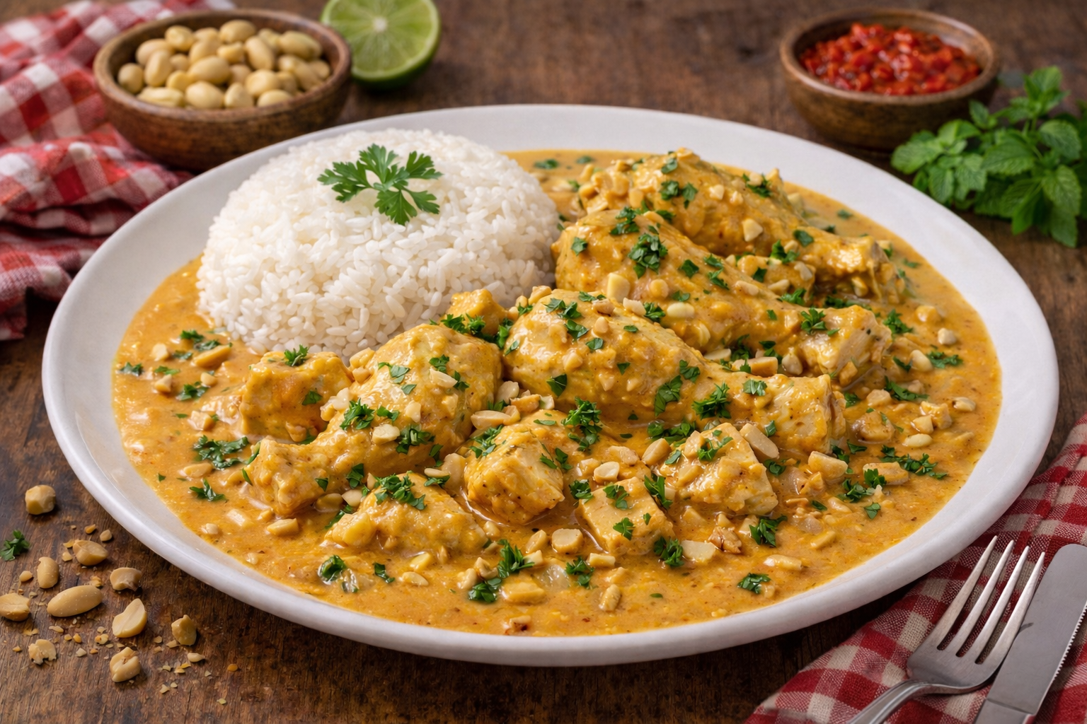 Ya sea que lo conozcas como maní, cacahuete o cacahuate, todos estos nombres hacen referencia a la misma legumbre: Arachis hypogaea. En el mundo hispanohablante, su denominación varía según la región: cacahuete se utiliza principalmente en España, cacahuate es común en México y Centroamérica, mientras que maní es el término más empleado en Sudamérica y el Caribe. Todas estas formas son correctas y están reconocidas por la Real Academia Española, por lo que este delicioso pollo al maní peruano también puede encontrarse bajo distintas denominaciones según el país, sin perder su esencia ni su sabor tradicional.